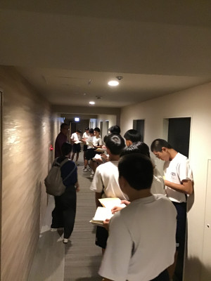 就寝前の点呼を終えました。夕食後、2名ほど気分不良を言ってきた生徒がいましたが、休息を取り回復しています。大丈夫です。