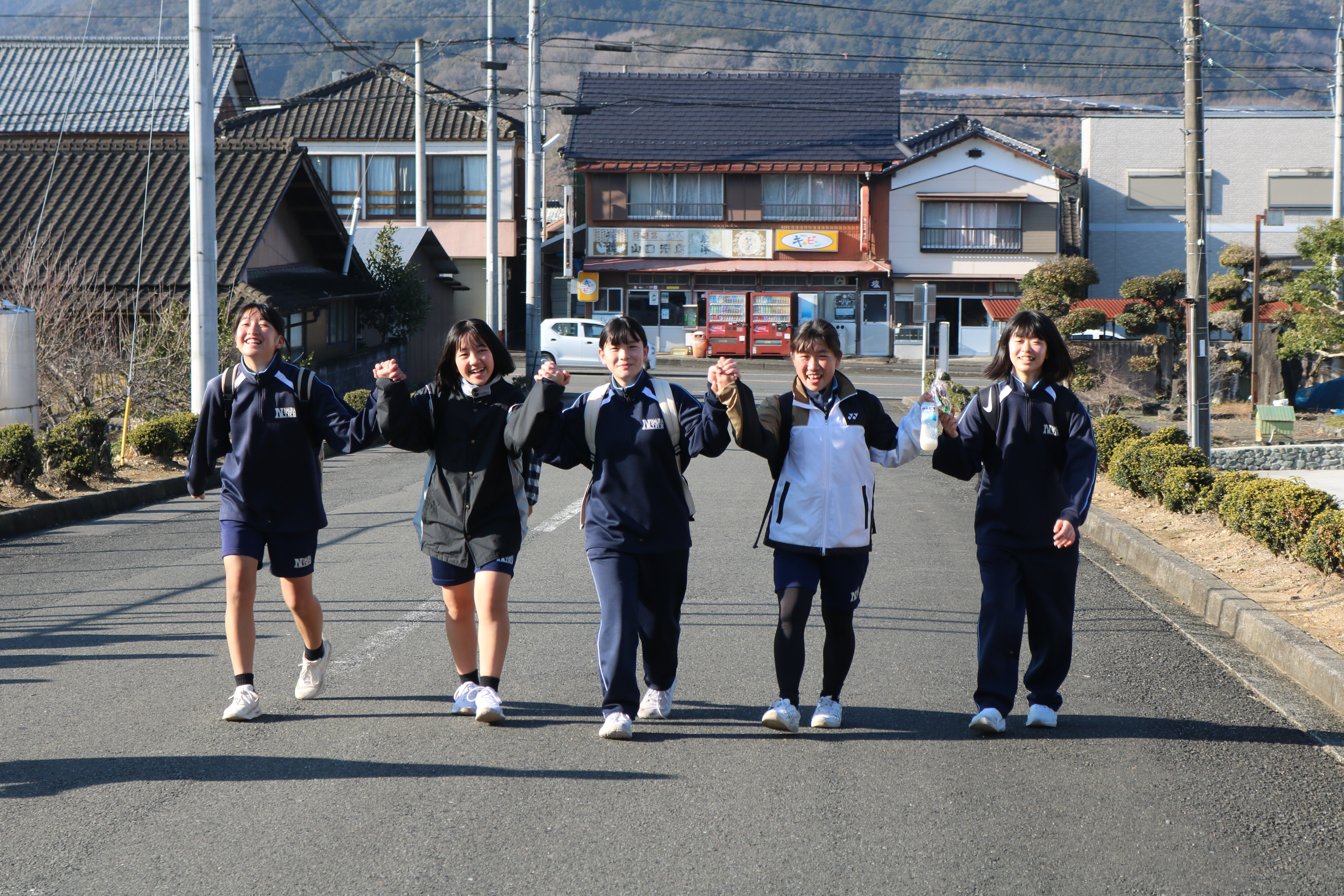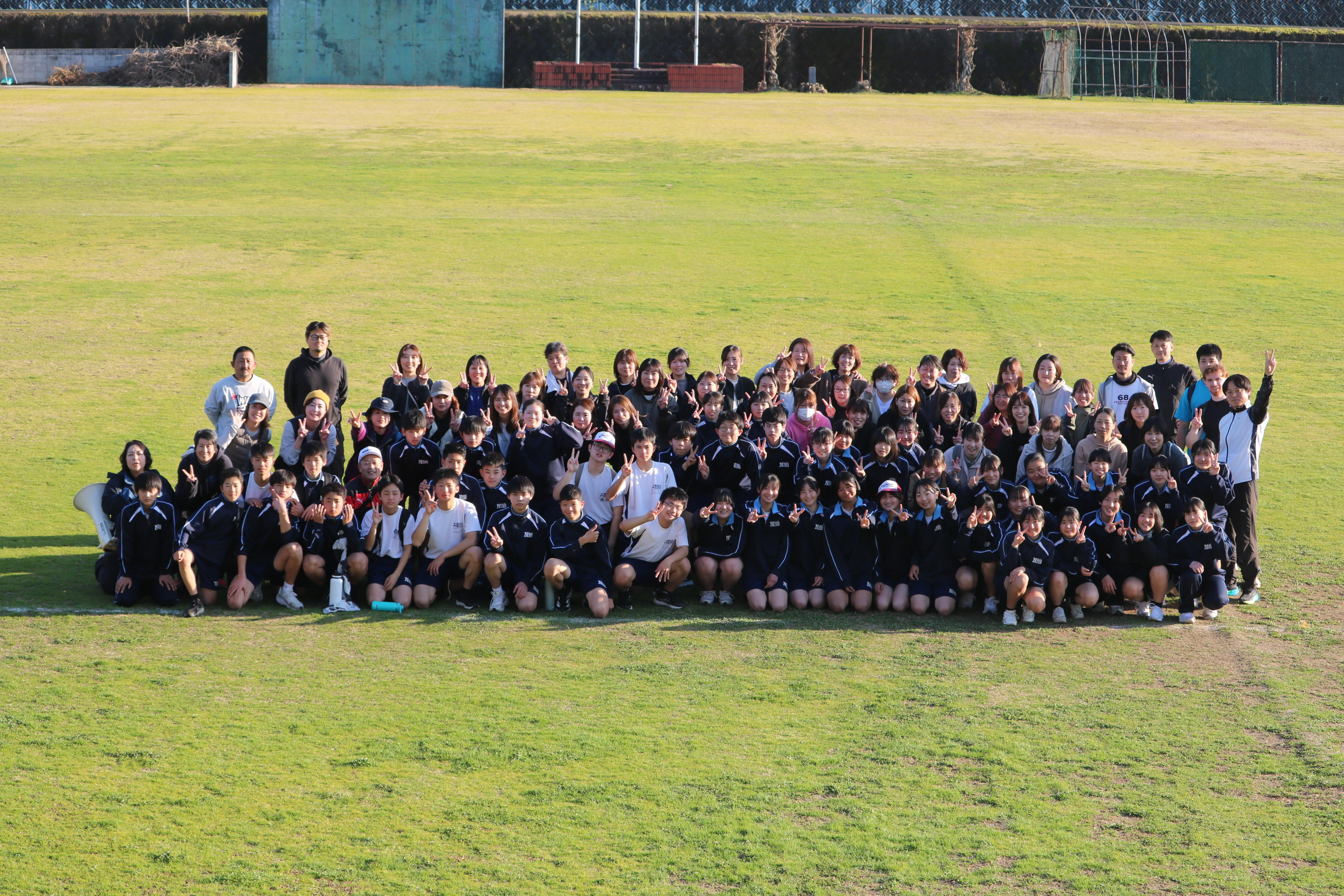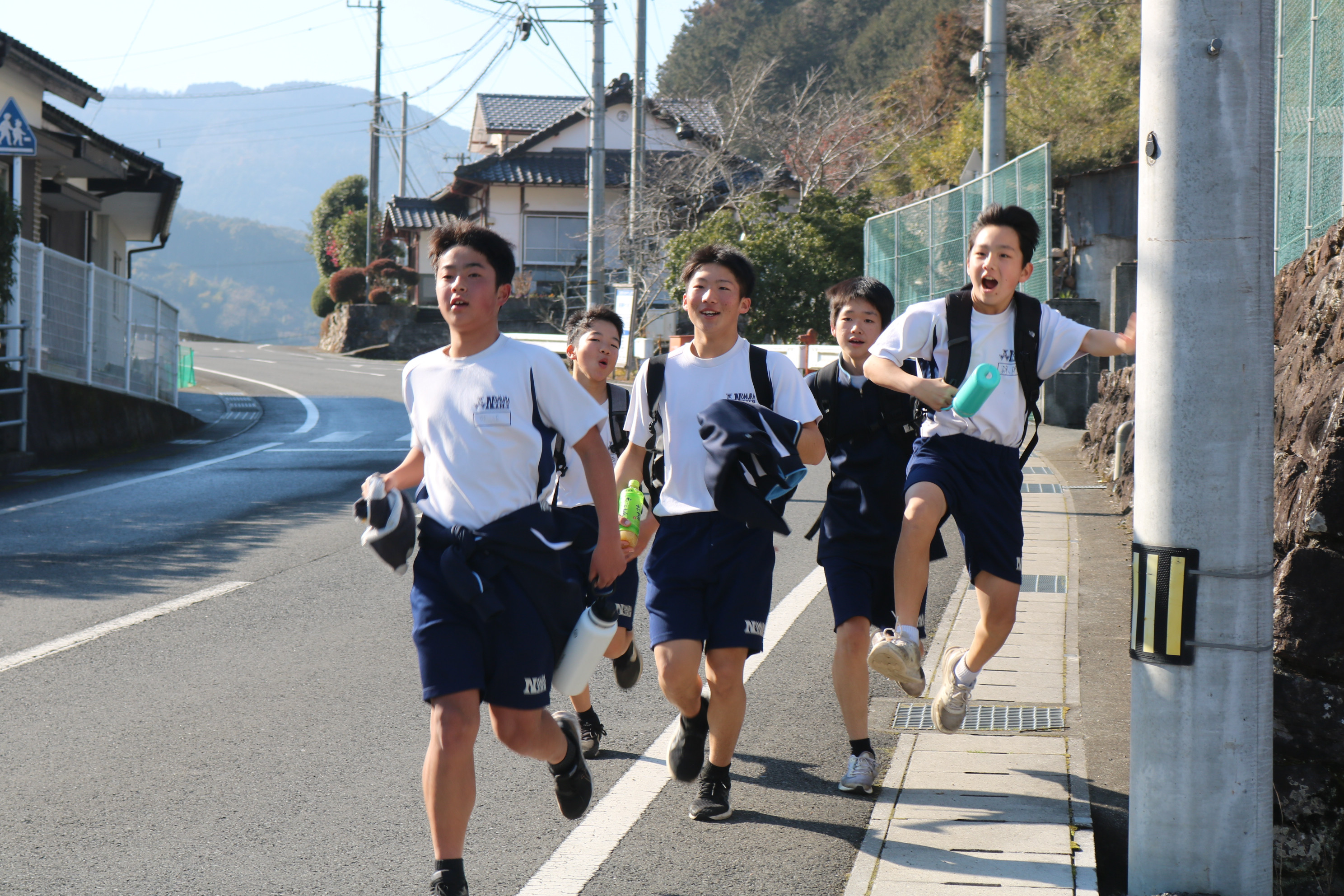 続いて野村町リレーマラソン大会の様子です。折り返し地点で声援を送っていましたが、みんな懸命の走りをしていました。2年生は一昨日の記念ウォーキングでコンディションは万全でなかった人もいたと思いますが、よく頑張りました。ここでは、チーム集合写真と閉会氏の様子をご紹介します。