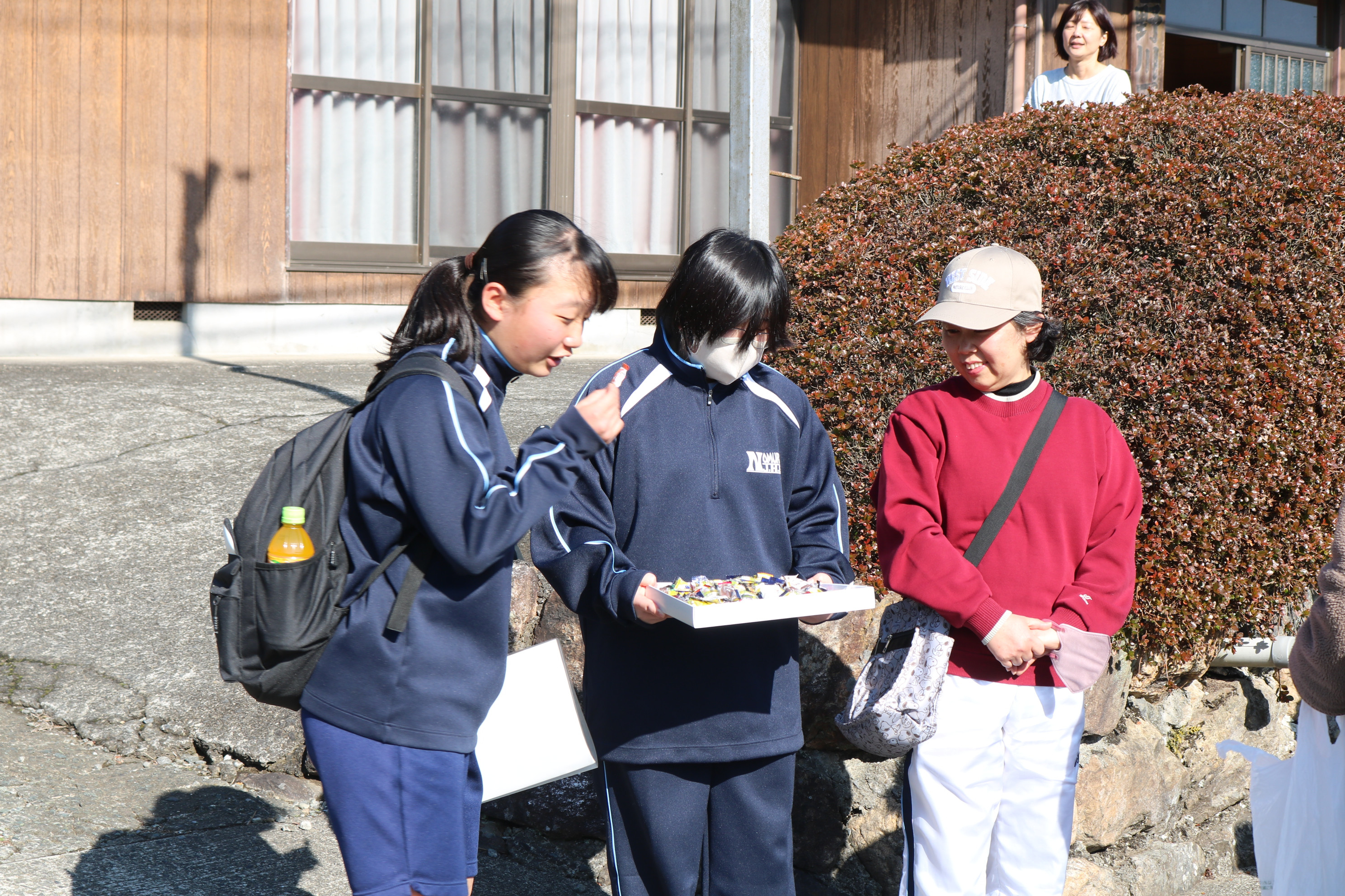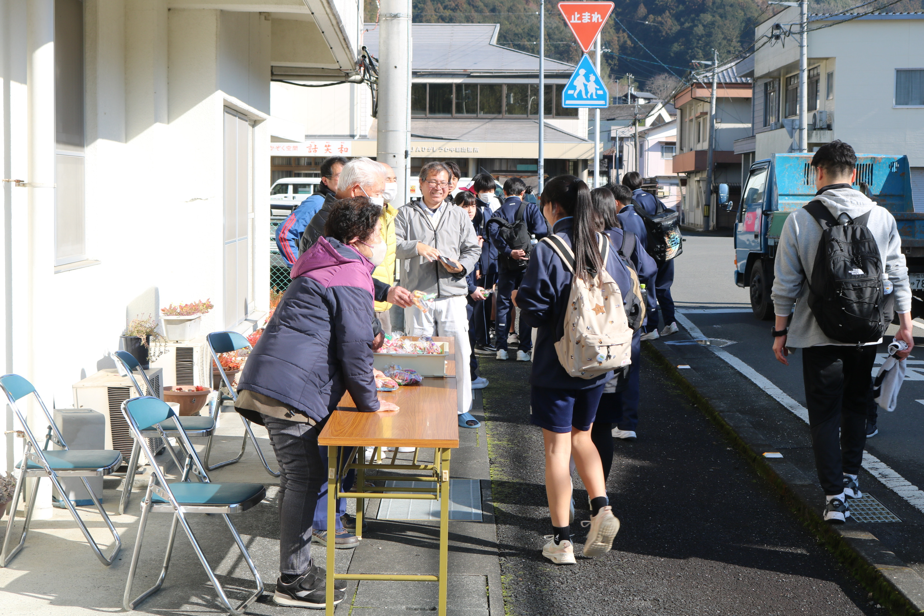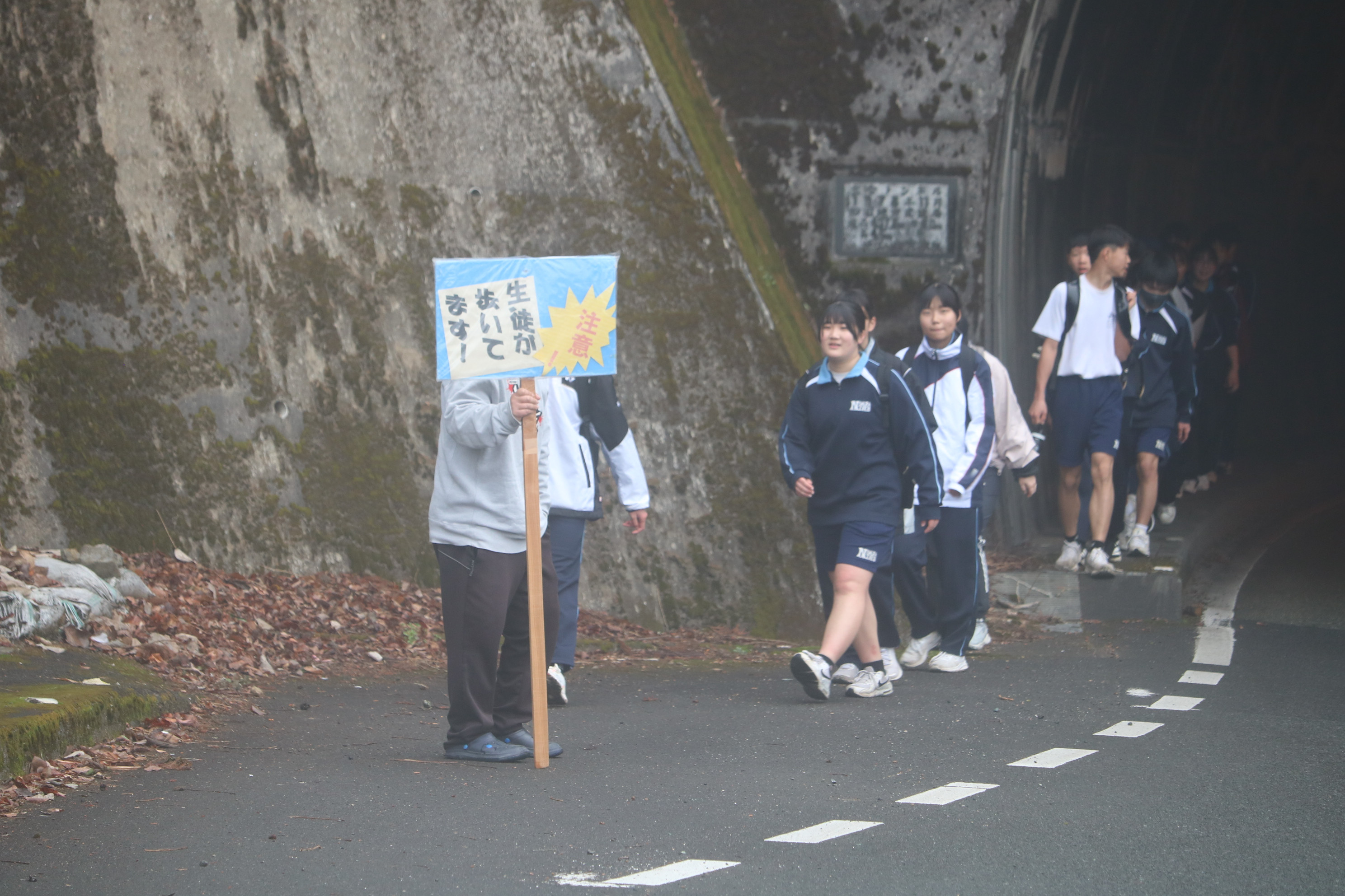続いて野村町リレーマラソン大会の様子です。折り返し地点で声援を送っていましたが、みんな懸命の走りをしていました。2年生は一昨日の記念ウォーキングでコンディションは万全でなかった人もいたと思いますが、よく頑張りました。ここでは、チーム集合写真と閉会氏の様子をご紹介します。